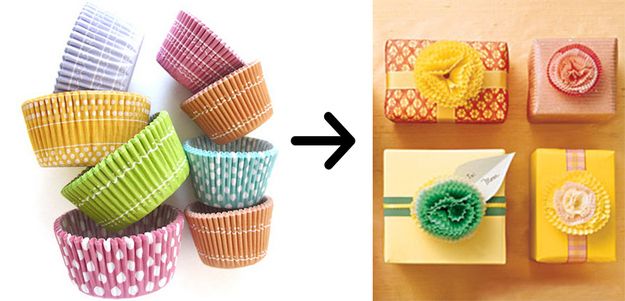 35. Cupcake-Paper Carnations: Baking liners make sweet gift toppers for Mother’s Day, or anytime. Nesting pastel papers in different sizes — petit four, mini muffin, and cupcake — creates fluffy blooms that will add a flourish to beribboned presents. (via Martha Stewart)