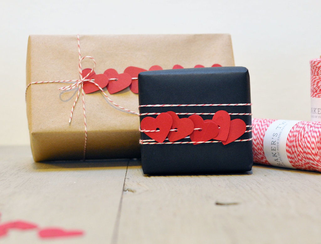 34. Twine and Hearts Gift Wrap: Today we have a fun and adorable DIY for you. One of our favorite things is wrapping gifts to make them look extra special. After all, a beautifully wrapped gift is a present in itself. Our gift wrap heart garland is super easy and will make everyone fall in love with your gifts … [Read more…] (via Smitten on Paper)