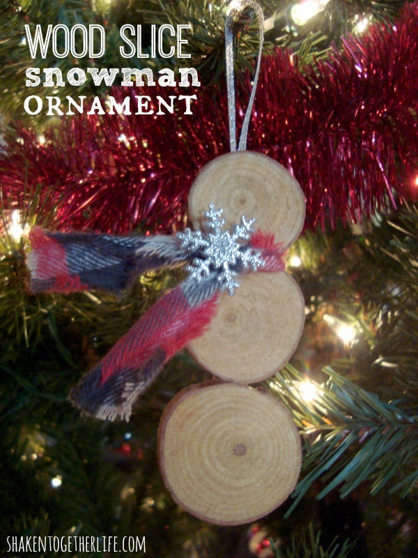 28. Wood Slice Snowman: This rustic wood slice snowman ornament is easy to make and gives a sweet rustic charm to your tree! Or, tie them on your gifts to add holiday cheer! (via Shaken Together)