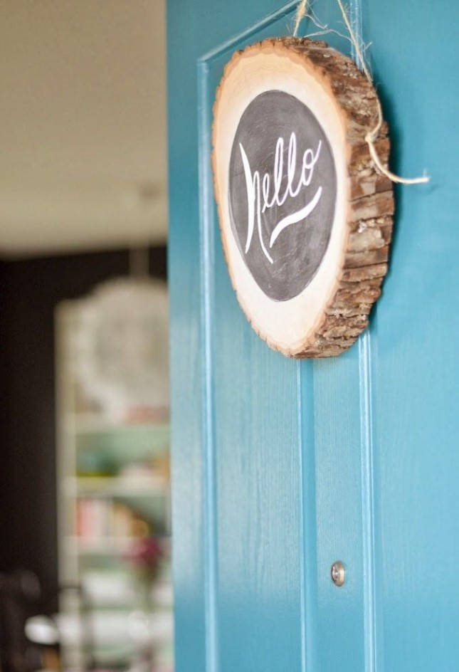 37. Wood Slice Sign: Hi Everyone!!!Guess what day it is?!! Yes, it just happens to be hump day as well, BUT more importantly its my turn to welcome you all infor the Modern & Fresh Fall (via A Home Full of Color)