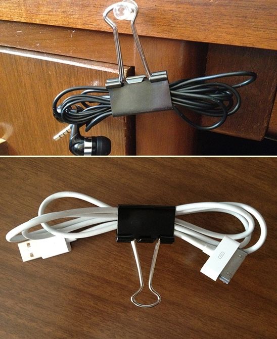 44. Neatly Wrap Up Cables or Headphones: If you need to wrap up cables or headphones but don’t want to deal with zip ties or twisty ties, you can simply use binder clips to easily hold them together for storage. (via Life Hacker)