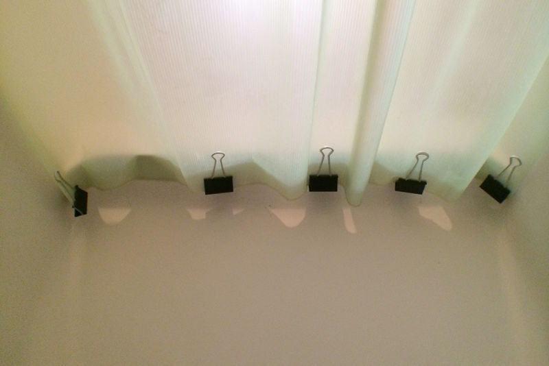 45. Keep Your Shower Curtain from Attacking You: Most people have experienced the inevitable shower curtain attack, in which it slowly gets blown into the tub during a shower, thus the “attack.” However, you can weigh your shower curtain down by clipping some binder clips to the bottom of it. (via Life Hacker)