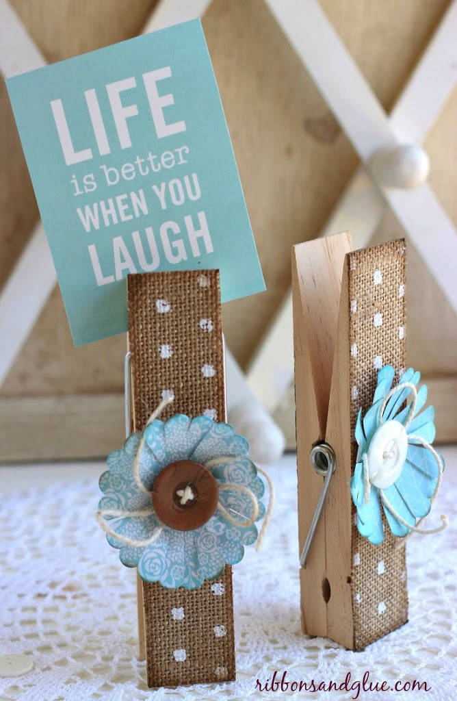 17. Burlap Clothespins: How to make Burlap Clothespins with the Pebbles Inc Home + Made collection (via Ribbons and Glue)