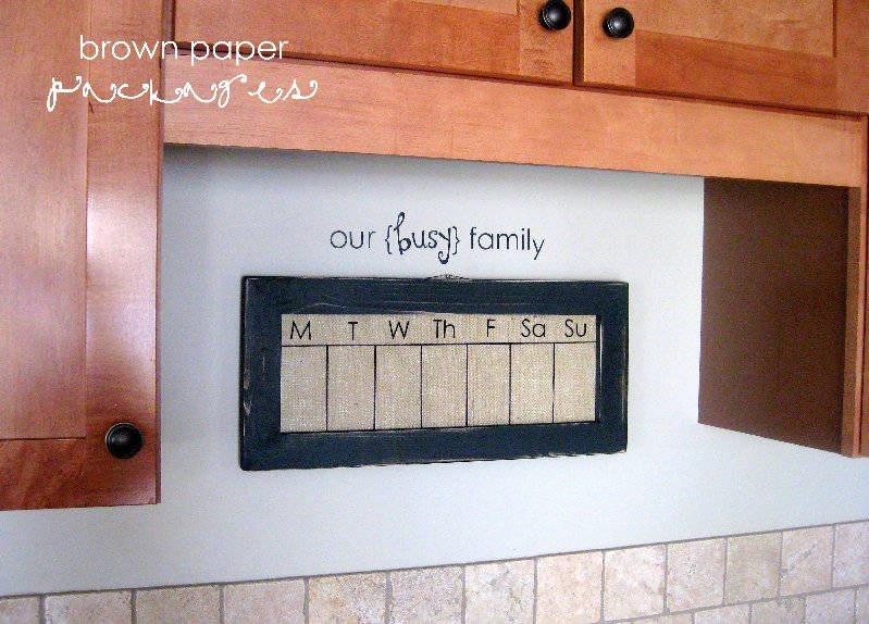 40. Burlap Dry-erase Weekly Calendar: After I saw the dry erase calendar from Friday’s post, I knew I had to make one of my own. (Click HERE for the full tutorial.) Even though I loved the large size, what I needed was a smaller version for a space I’ve been trying to fill for a long time. Despite the fact (via Simply Kierste)