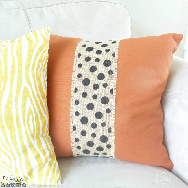 10. Two Minute No Sew Burlap Embellished Pillows: I can’t wait to share with you this amazing easy and fast way to add a little fall feel to your living room decor: all you need is a little burlap, a pillow, and a glue gun! I found these orange pillows on clearance at Real Canadian Superstore for $4.98 each! I usually make my (via The Happy Housie)