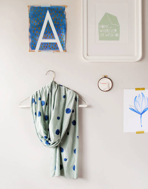45. No Sew Stamped Scarf: Your home for all things Design. Home Tours, DIY Project, City Guides, Shopping Guides, Before & Afters and much more (via Design Sponge)
