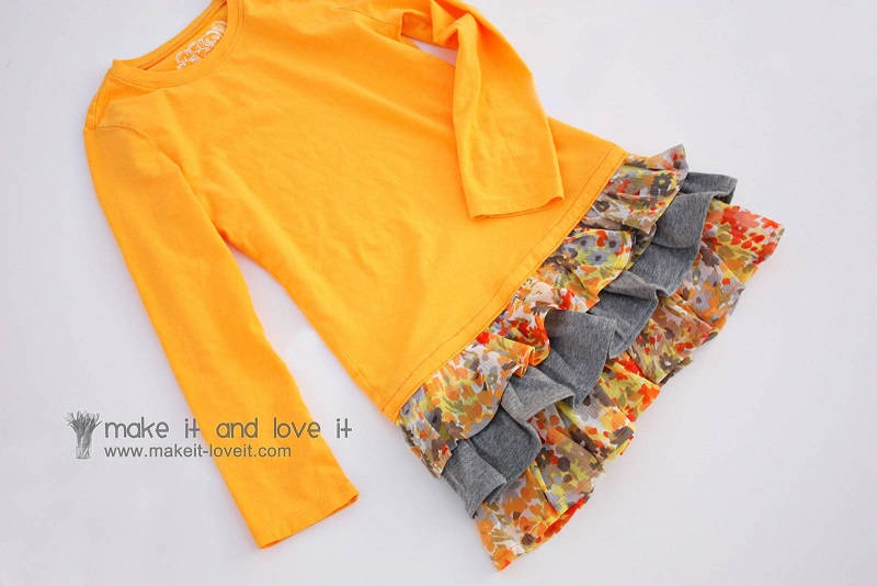 21. Long Sleeved Tee into Ruffled Dress: . I bought my little girl several long sleeved Tees at Children’s Place a while ago. But when I pulled them out of her drawer to put them on her, they looked so boring. I know, I know.just leave things alone Ashley. I just cant help myself. I should just leave some things be, but (via Make It and Love It)