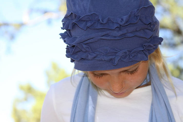 23. T-Shirt Ruffle Hat: Remember this hat? Here is the tutorial Materials: 1 Old T~ shirt or 2 if you want your ruffles a different color Coordinating Thread Pattern: Cap size 12-18 Month Cap Size 2T You also can use a cap that fits your child already and use that for the pattern. STEP 1. Cut out the cap using your pattern. Step 2. Cut out the strips for the ruffles. This measurement will vary depending on how gathered you want your ruffles to be. The blue hat seen above had less gathering than the pink one shown below. I like to double the… (via Tao of Craft)