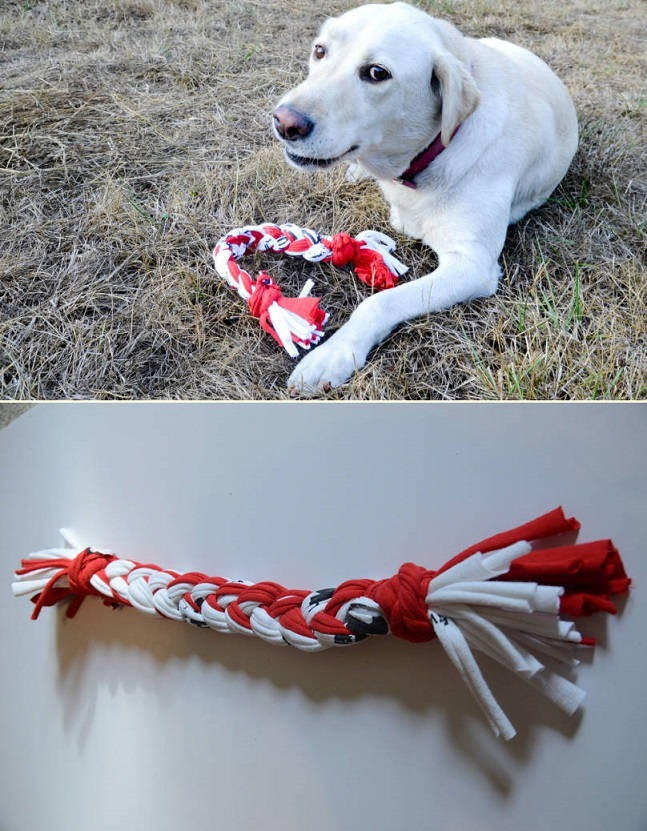 32. T-Shirt Dog Toy: See how to make a toy for your dog with old t-shirts — No sewing or crafty skills required! ???? (via BarkPost)