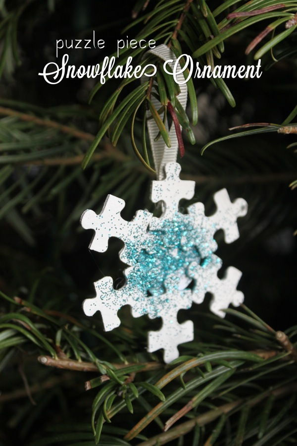52. Puzzle Piece Snowflake: Today, Gracens advent calendar pouch included a handful of jigsaw puzzle pieces (from Urban Source) and a handwritten note telling her that they could be used to make a snowflake ornament (I originally found the idea here). She of course was ready to begin the project the very instant she opened it. While puzzle pieces (via Mama.Papa.Bubba)