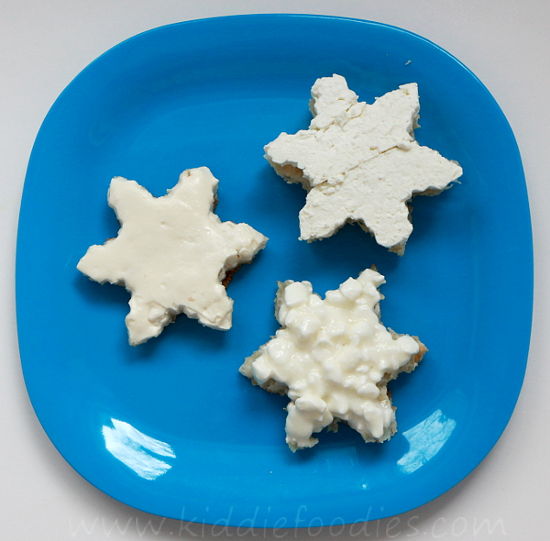 56. White Cheese Snowflake Sandwich: White cheese snowflake shaped sandwich, healthy breakfast for kids. Easy kids breakfast idea, great for winter days. Can be served with milk or hot cocoa. (via Kiddie Foodies)