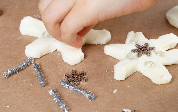 57. Sparkly Snowflake Play Dough: Make beautiful sparkly white play dough and invite kids to make winter creations like snow flakes, snowballs, and snowmen. (via Fantastic Fun and Learning)