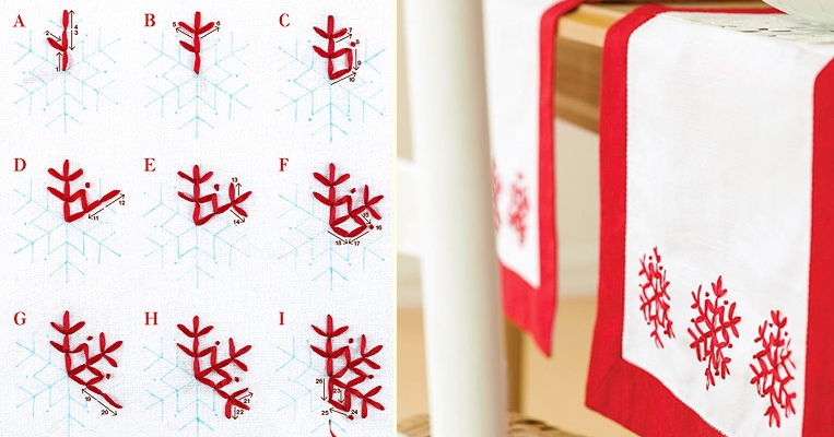 61. Easy Embroidered Snowflakes Table Runner: Create a holiday heirloom you’ll treasure for years using two crisp white linen runners, then finish the edges with a red border and embroider a snowflake design at the ends. (via Better Homes and Gardens)