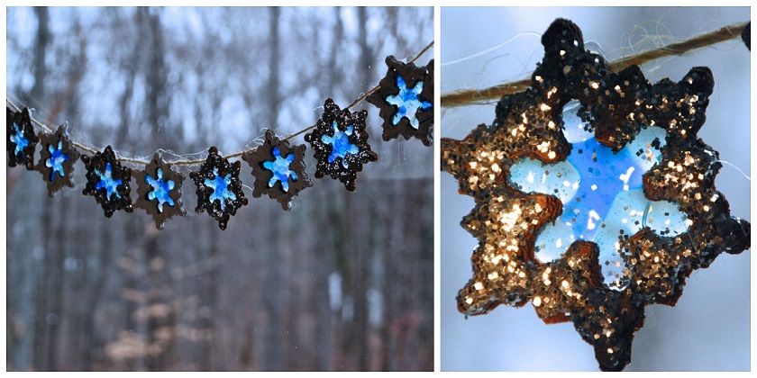 73. Snowflake Suncatcher Garland: snowflake suncatcher garland (via Homegrown Friends)