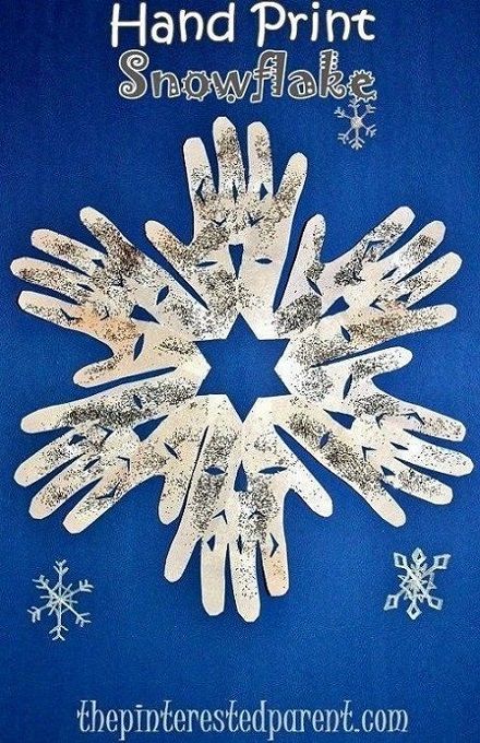 8. Hand Print Snowflake: * This post contains affiliate links* A funny thing happened the other day. A group of my friends were talking about the winter & things to do with our kids. We began talking about cutting pape (via The Pinterested Parent)