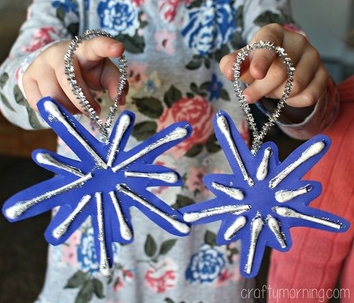 28. Q-Tip Snowflake Ornament: Learn how to make beautiful q-tip snowflake ornaments for Christmas! It’s an easy and cheap craft for the kids to make. (via Crafty Morning)