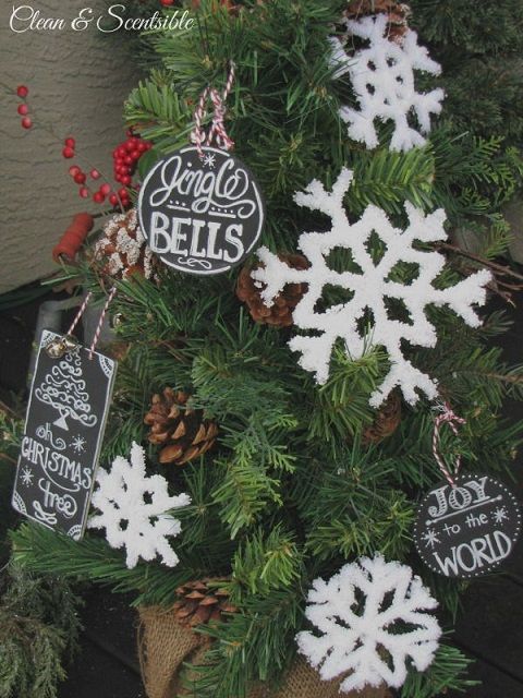 30. Frosted Pipe Cleaner Snowflake: These frosted pipe cleaner snowflake ornaments are so simple to do and look so pretty hanging from your tree or other Christmas display! (via Clean and Scentsible)