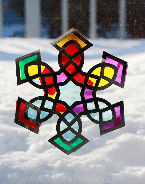27. Suncatcher Snowflake: Suncatcher snowflake craft for kids. Easy to make paper craft, great fun to play with once all the colors are shining through the snowflake! (via Kiddie Foodies)
