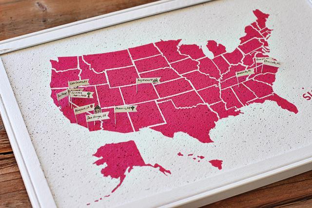 29. Travel Map Bulletin Board: How to reverse stencil a travel map…. (via Lil Blue Boo)