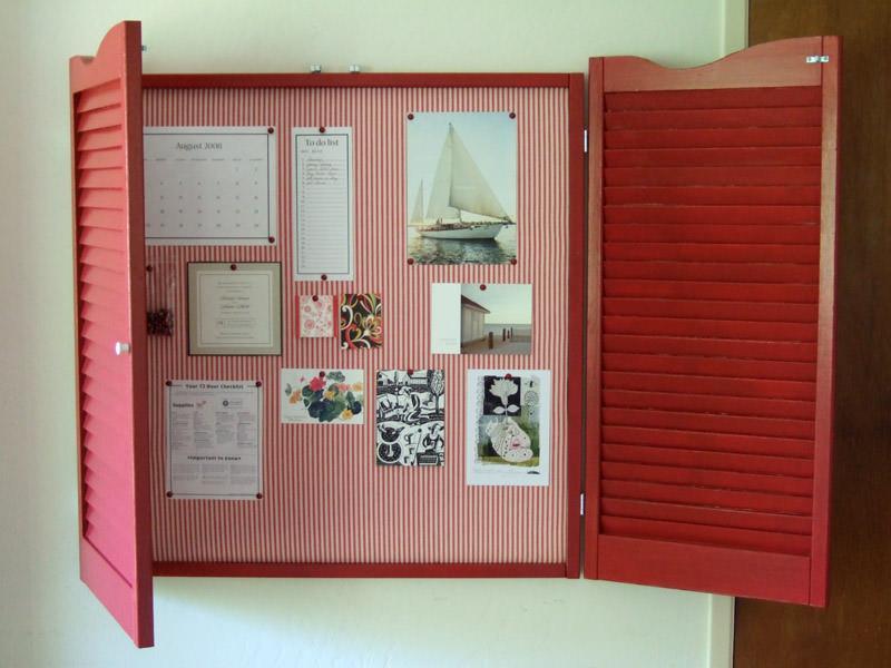 33. Bulletin Board with Shutters: Crafty Nest shares practical, inexpensive, and pretty DIY home decorating crafts and ideas. Many of the do-it-yourself projects include salvaged, green, or recycled materials. (via Crafty Nest)